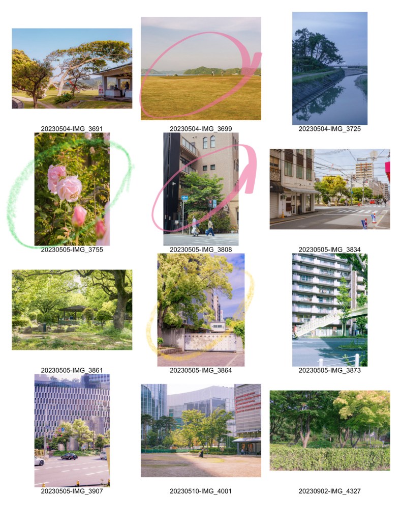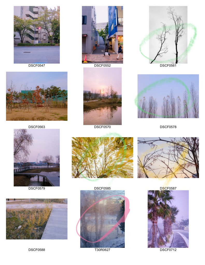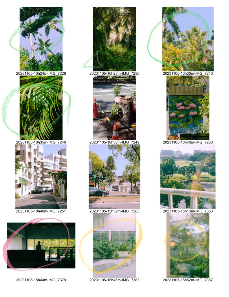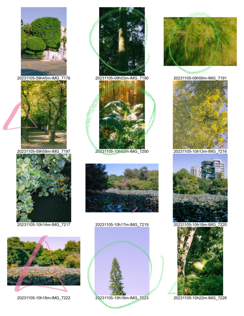출력해서 실제로 보면 좀더 괜찮을까? 사진이 대체로 평면적이고 입체감이 떨어져서 힘든 것 같기도 하다. 또 의식있는 촬영 없이, 있는 사진 가운데에 식물과 초록의 주제에 맞는 사진을 고른다는 게 어려웠다.