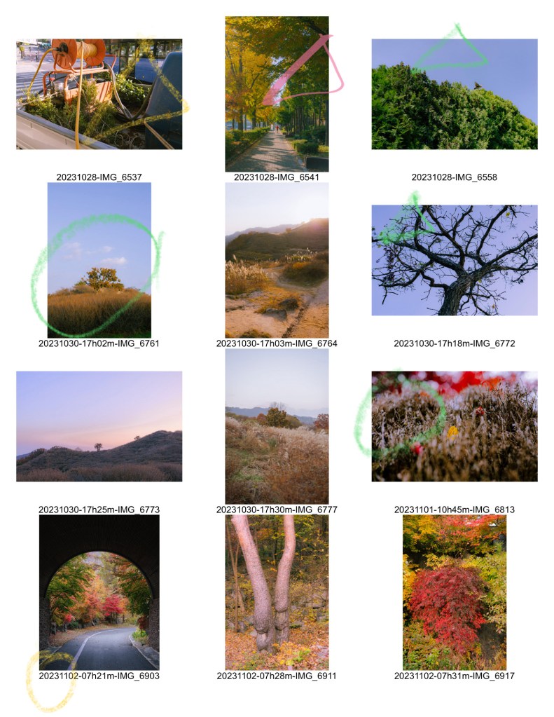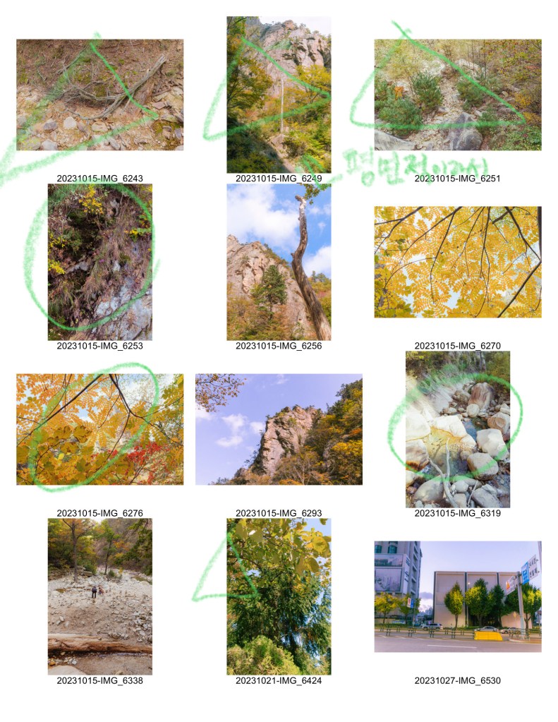 - 고른 사진 가운데에 20장 내외로 베스트 추리기 (2단계)