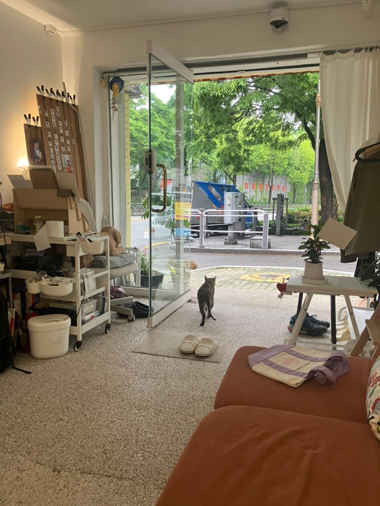 가게에 동네 고양이가 들어왔다.